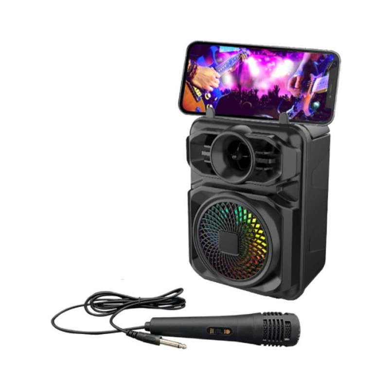 Doté d’un super bass, d’un éclairage LED RGB, d’une poignée de transport intégrée et d’un support smartphone, il est parfait pour les soirées, le karaoké, le streaming musical et l’animation.