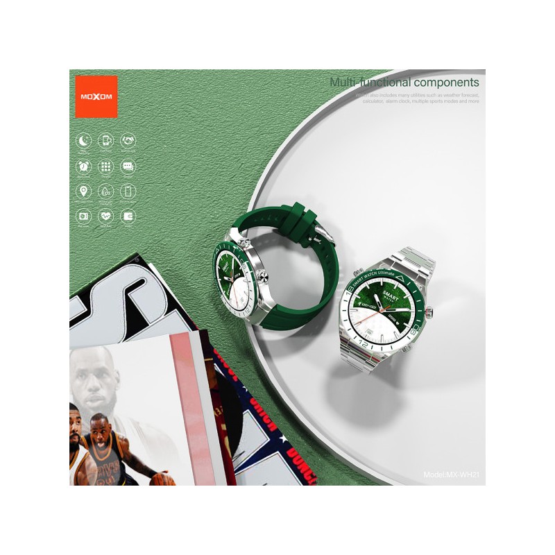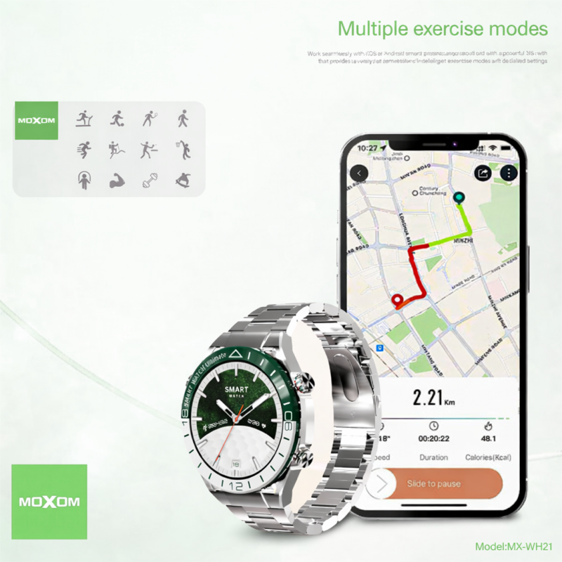 La Moxom MX-WH21 est une montre intelligente moderne qui combine design élégant, fonctionnalités connectées, et suivi santé pour un usage quotidien. Elle est conçue pour être à la fois accessoire de mode et assistant personnel connecté à votre smartphone.